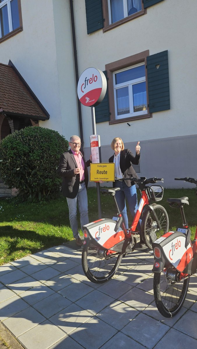 Mit Frelo kommt nun ein weiteres Angebot für eine regionale klimafreundliche Mobilität hinzu. Die Leihräder sind eine willkommene Alternative zum Auto für Pendlerinnen und Pendler und für alle, die unsere schöne Region erkunden wollen. Bisherige Erfahrungen zeigen, dass Frelo für die sogenannte letzte Meile zum Bahnhof, zum Arbeitsplatz oder aber auch die Fahrt in den Nachbarort genutzt wird. Der große Vorteil von Frelo ist die Flexibilität – man kann individuell planen, weil die Räder ganz unabhängig vom Fahrplan rund um die Uhr ausleihbar sind. Die E-Frelos haben eine Mindest-Reichweite von 60 km und werden dadurch sicherlich einen wichtigen Beitrag zur Vernetzung unserer Gemeinde mit den Nachbargemeinden leisten.